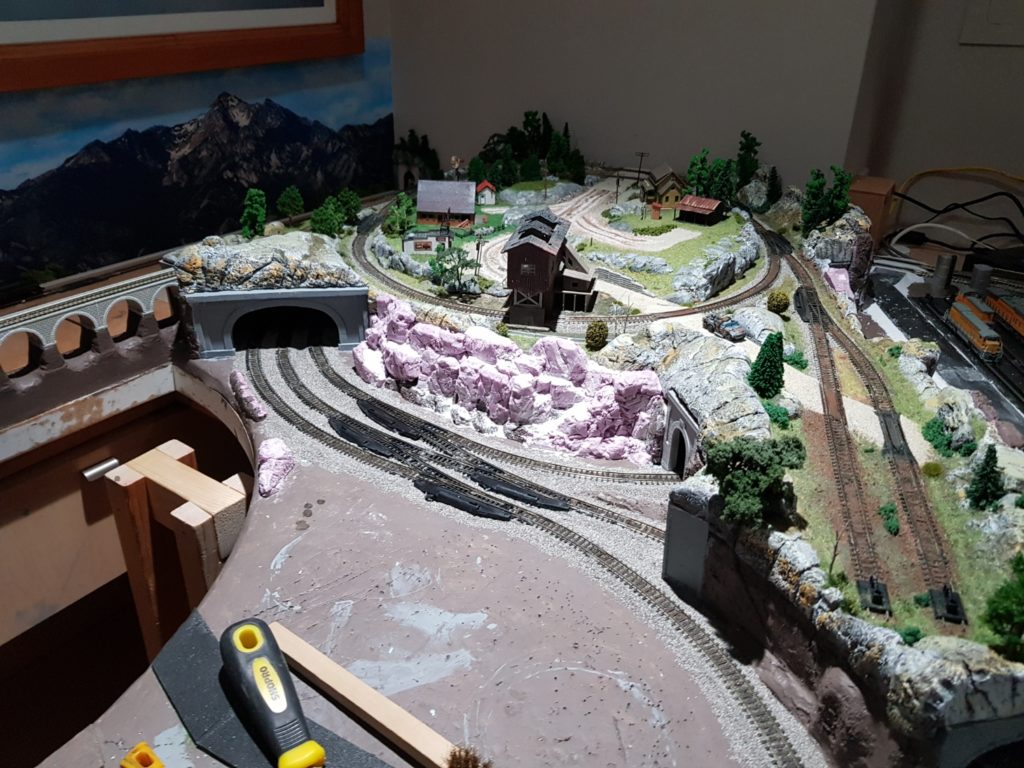 Finishing off a bunch of stuff, all on the right side. Lots of ballasting of the tracks