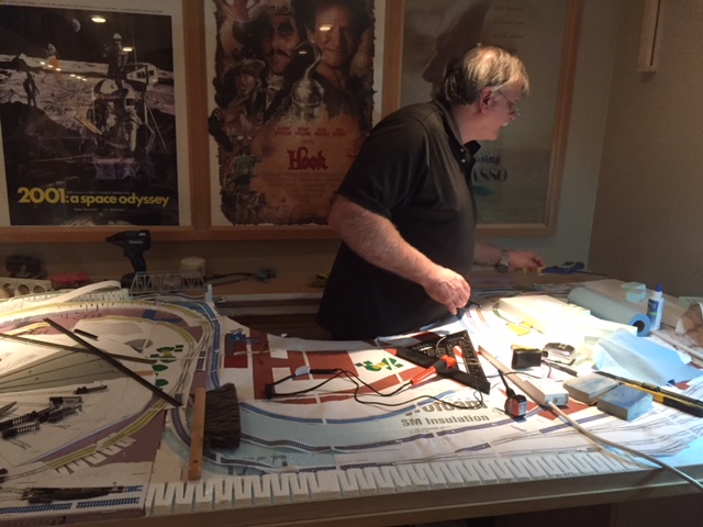 Because the layout has a wall on two sides.  The hole makes it easy to get at the back and right side of the layout.  The back bench is also where all the power and control wires enter under the train set.